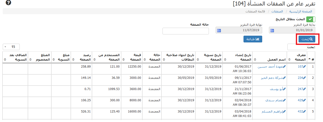 4- نحدد طريقة البحث إما بواسطة (اعتماد على نطاق تاريخ - بدون نطاق تاريخ - اعتماد على حالات الصفقات)