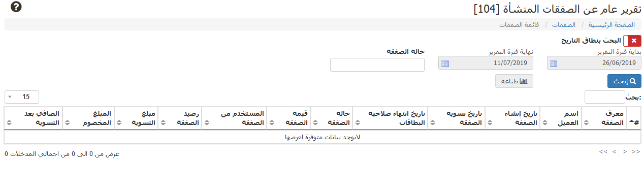 3- بعد إختيار العنصر ستفتح لنا الشاشة الخاصة بعرض تقرير الصفقات .
