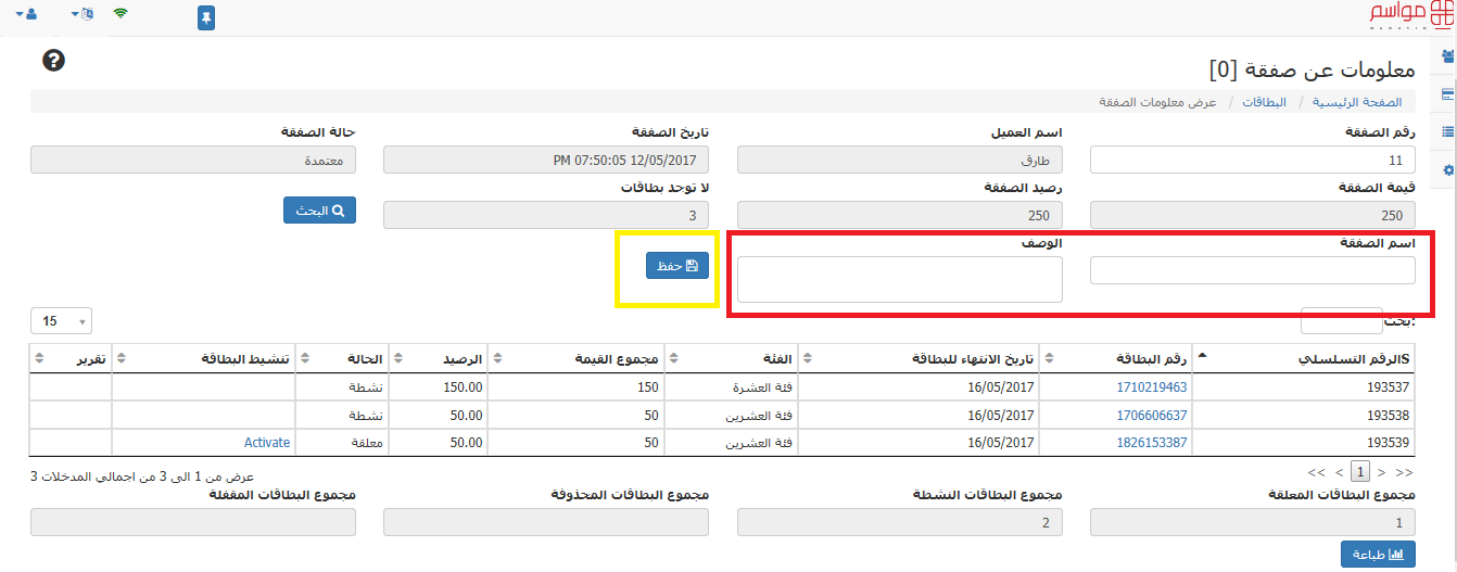 يتيح لنا نظام مواسم أن نعرض رصيد بطاقات الصفقة وكم قيمة الصفقة وأيضا الرصيد المتبقي بالصفقة .-