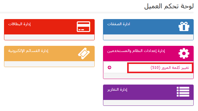 2- من القائمة المنسدلة نختار العنصر (تغيير كلمة المرور(510))